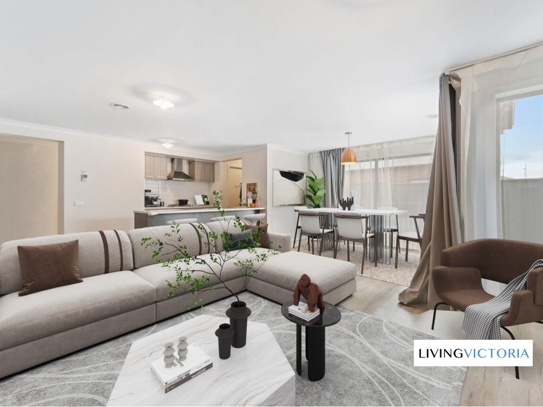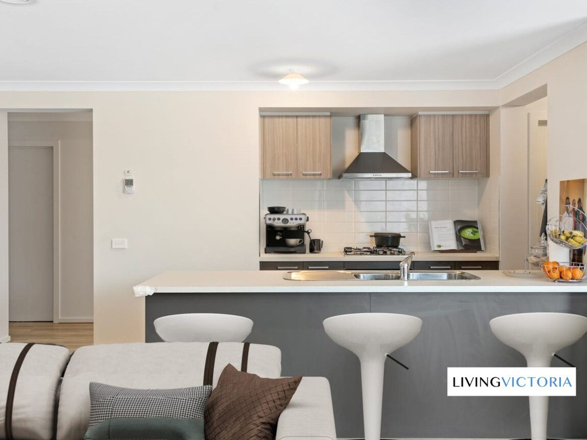 The modern kitchen is well-appointed with ample storage and bench space, seamlessly flowing into the open-plan living and dining area, perfect for everyday living and entertaining. A second living area provides additional flexibility for families or those working from home.