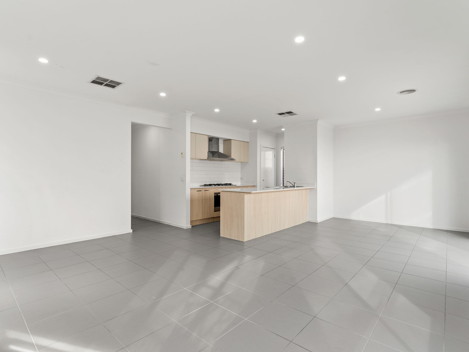 The home boasts a light-filled open-plan living and dining area, seamlessly connected to a practical kitchen with ample storage and workspace ideal for everyday living and entertaining alike.